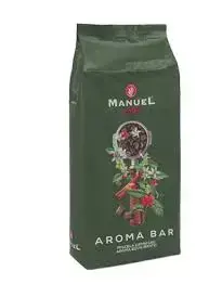 Manuel Aroma Bar je vynikající směs 9 vybraných odrůd arabiky z Guatemaly, Etiopie, Kostariky a Kolumbie s přídavkem kvalitní robusty. Zrna jsou stejná a středně pražená, espresso připravené na bázi Manuel Aroma Baru zajišťuje bohatou a trvanlivou cremu.
